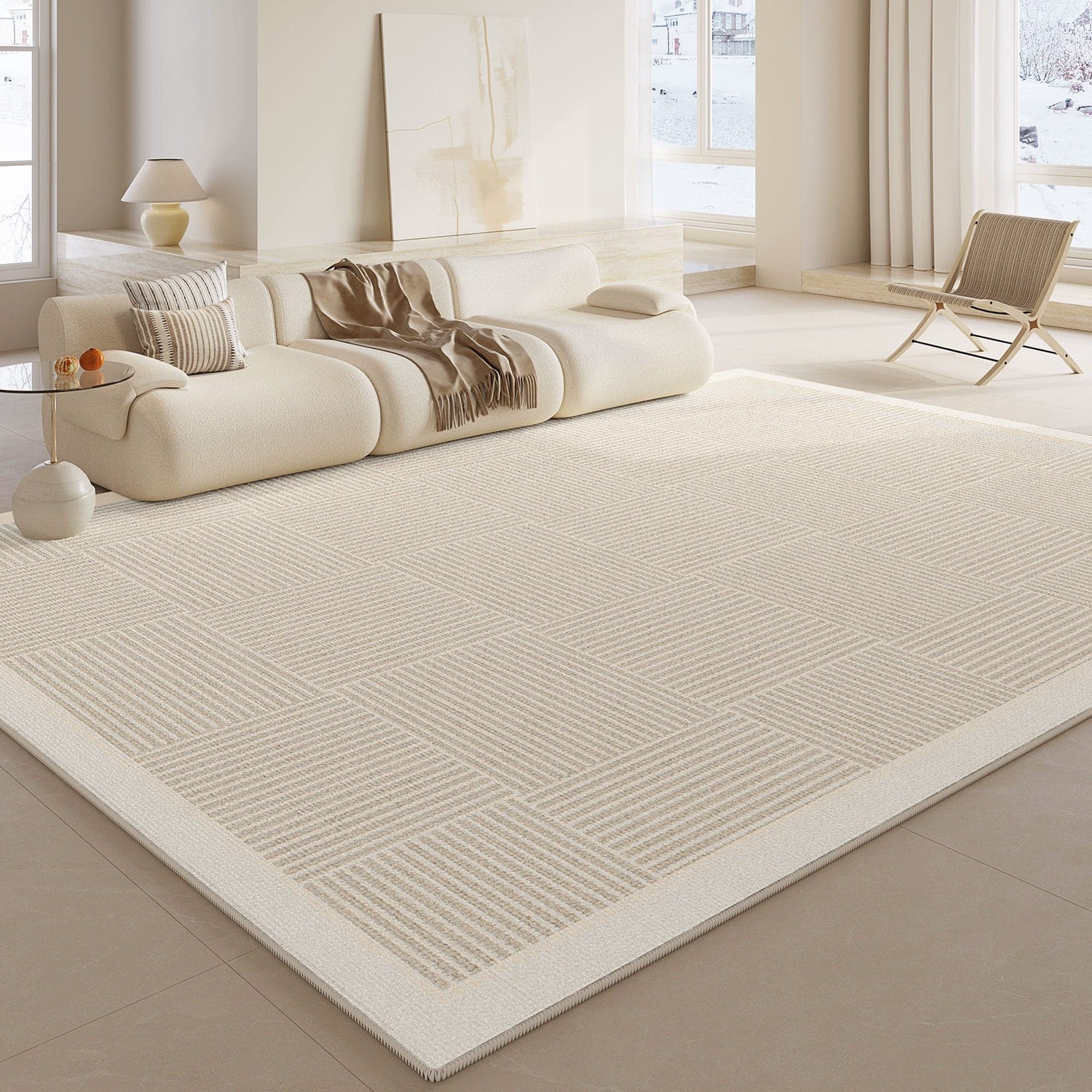 Slashop Easy Clean Rug Soft Harmony Plaid Spillproof Pet-Friendly Minimalist Living Room Area Rug - Elegant Ivory