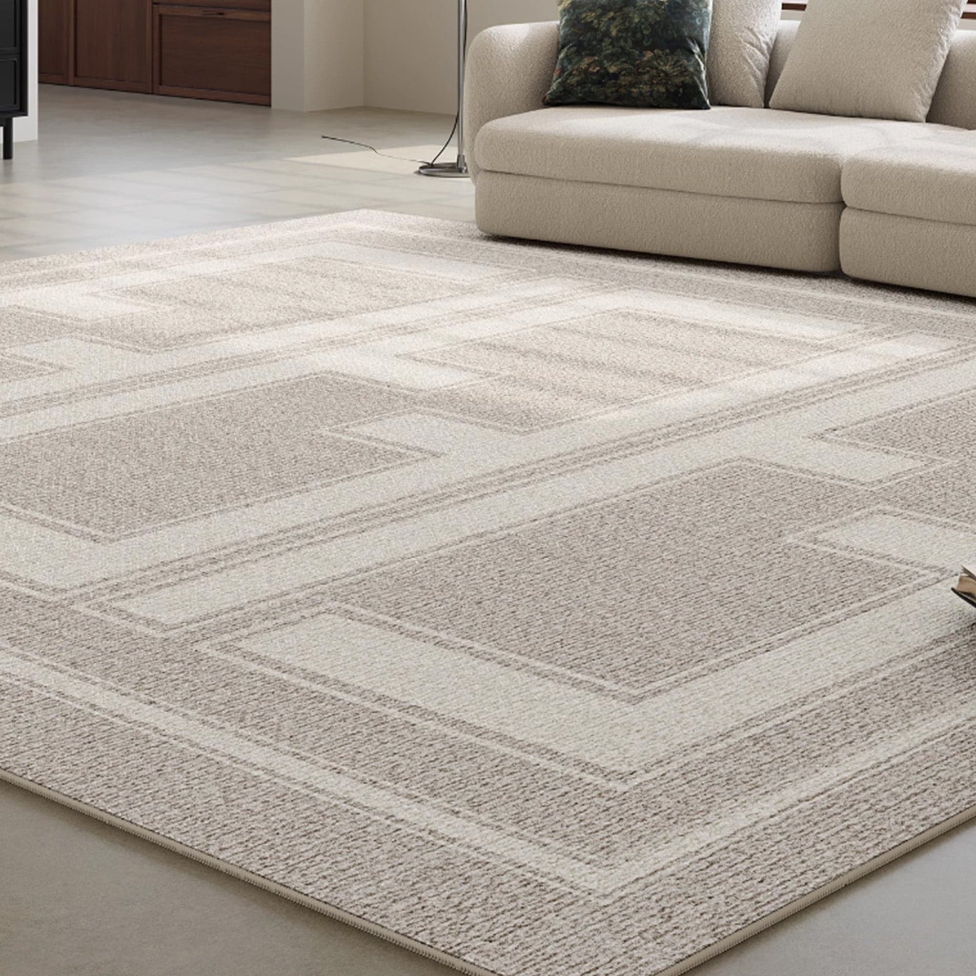 Slashop Easy Clean Rug Geometric Modern Spillproof Pet-Friendly Minimalist Living Room Area Rug - Beige Horizon