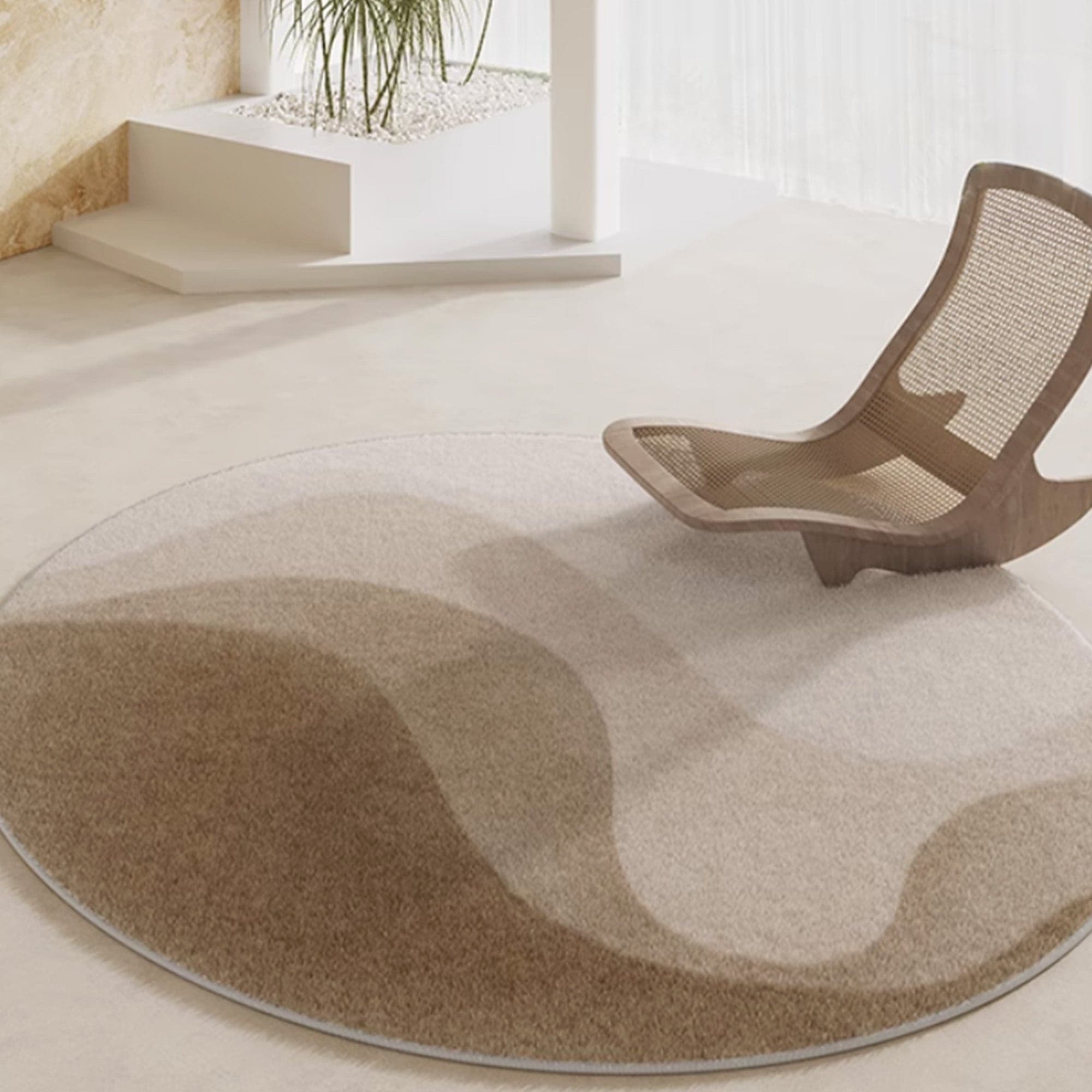 Slashop Easy Clean Rug Sand Dune Pattern Zen Garden Round Spillproof Pet-Friendly Modern Living Room Plush Round Rug - Sand Dune