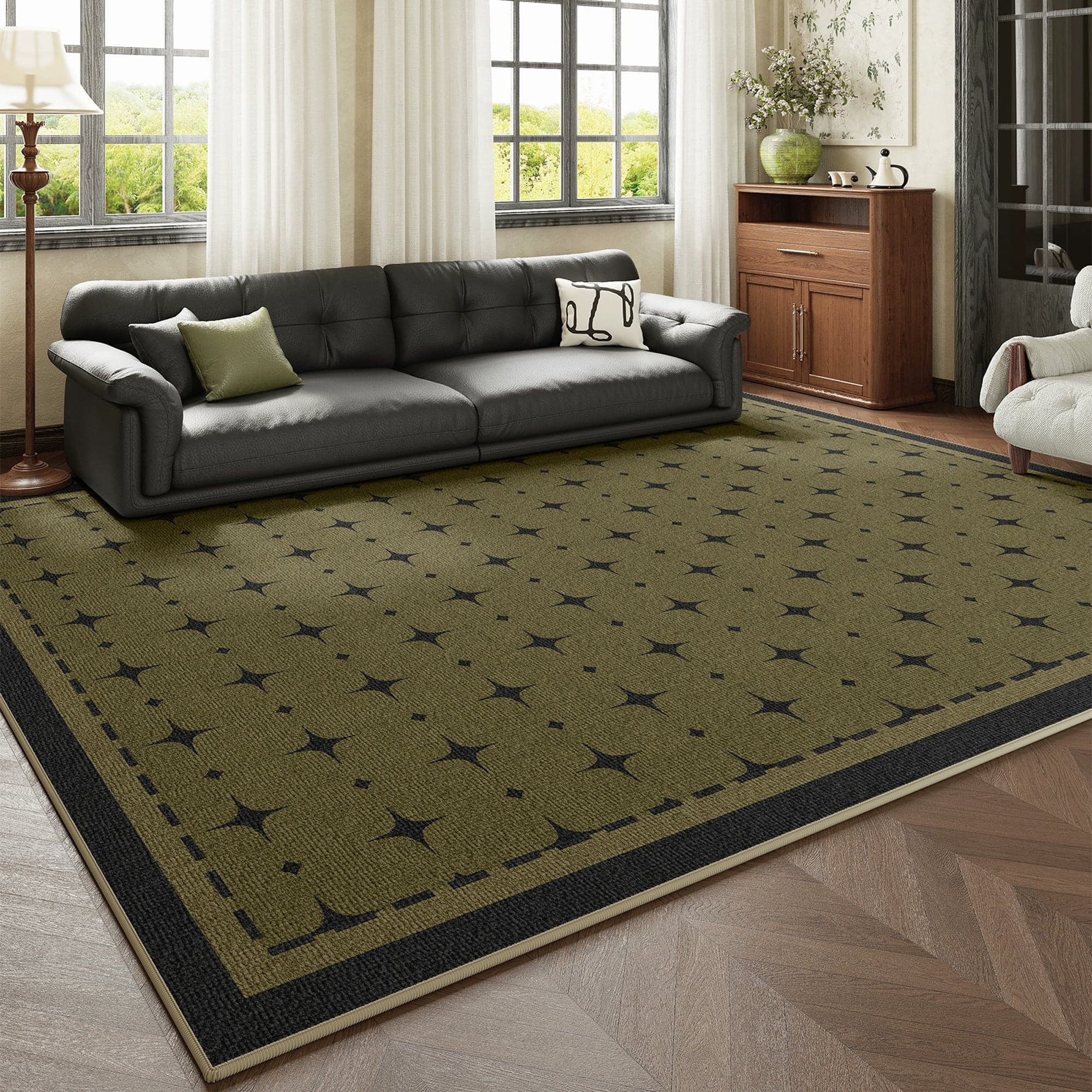 Slashop Easy Clean Rug ClassicRegal Oasis Spillproof Pet-Friendly Vintage Living Room Bedroom Rug - Deep Olive
