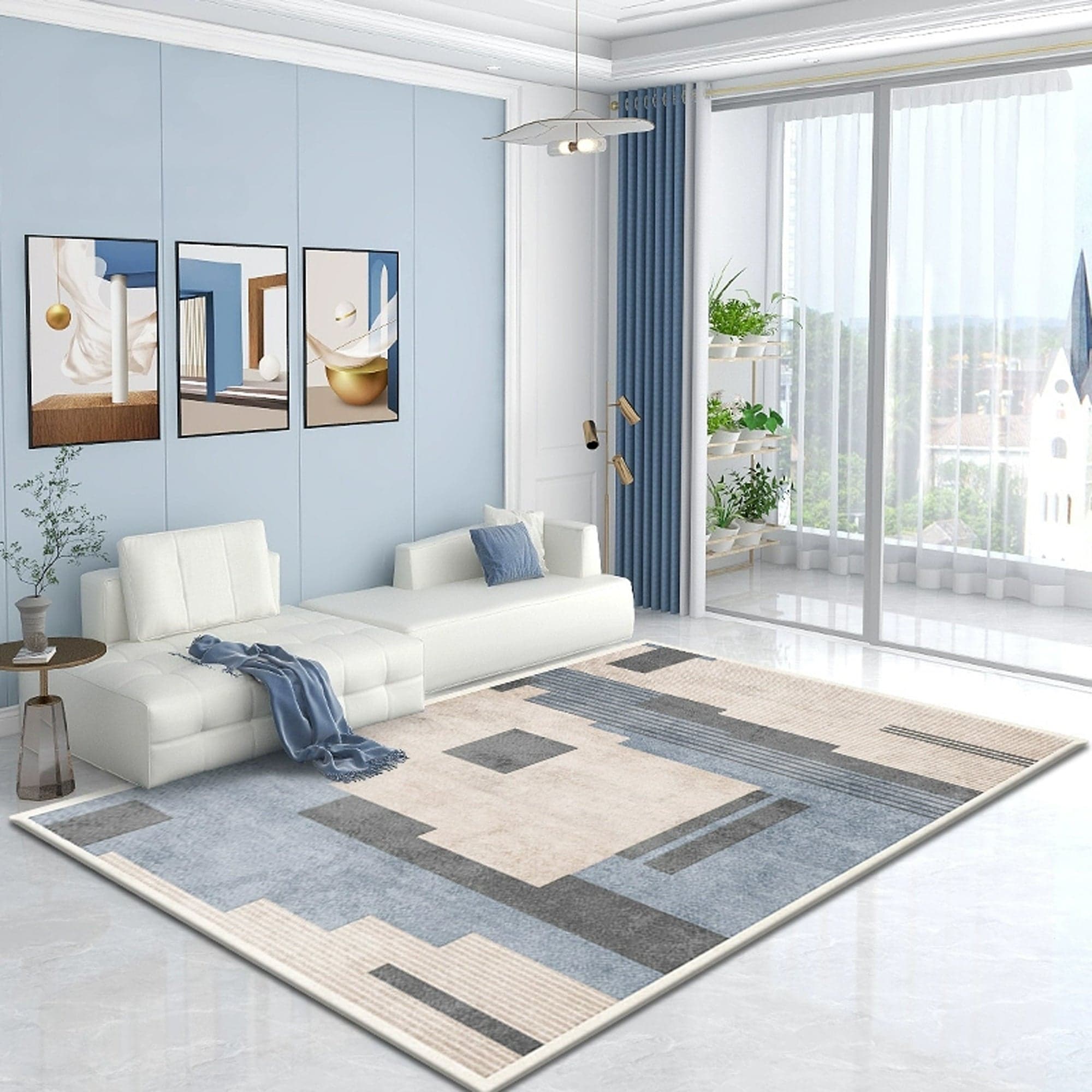 Slashop Easy Clean Rug Modern Abstract Blue Spillproof Pet-Friendly Modern Living Room Area Rug