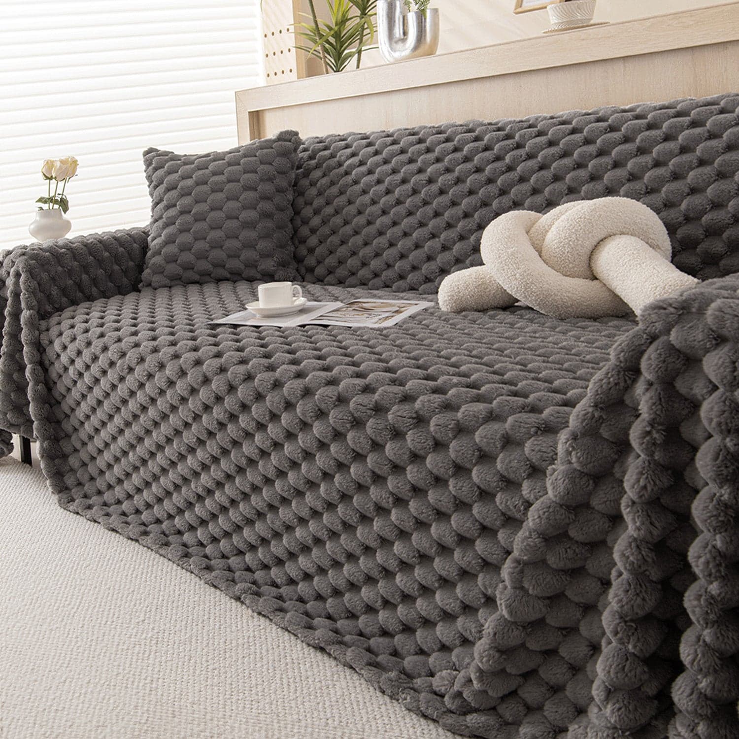 Slashop Cozy Chic Sofa Cover - Slate Charcoal