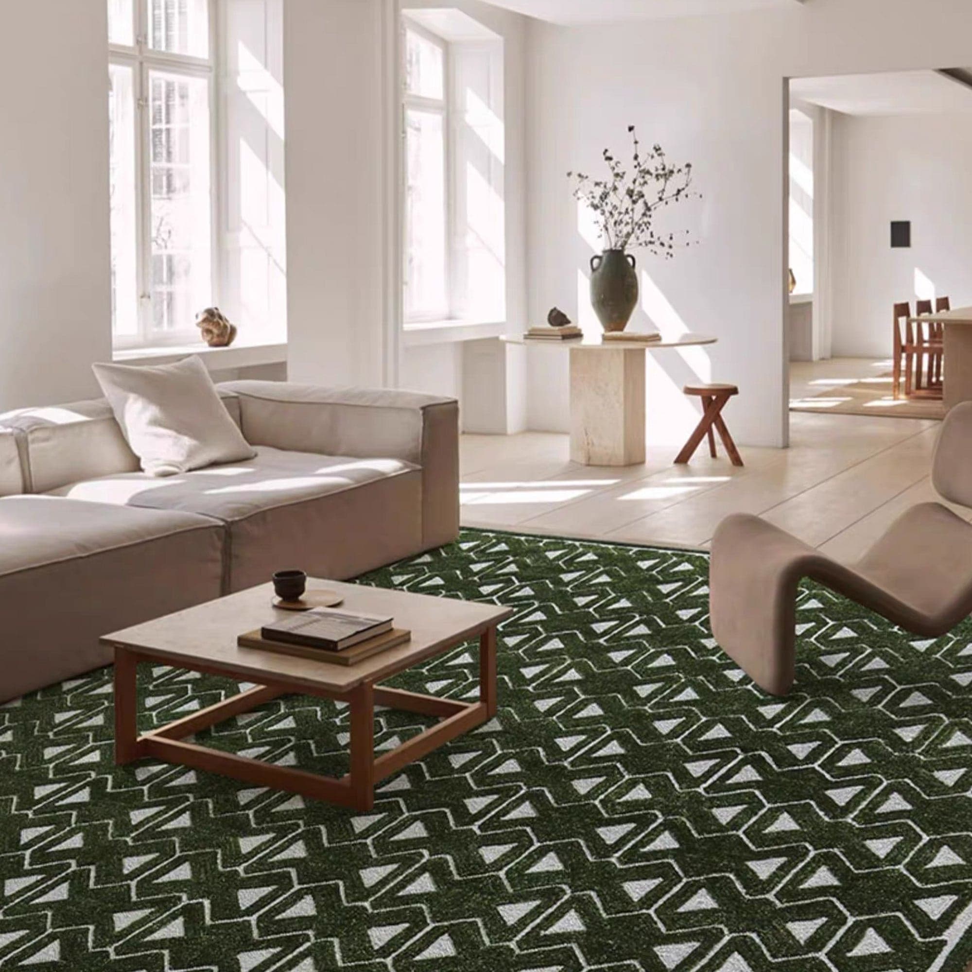 Slashop Easy Clean Rug Modern Geometric Spillproof Minimalist Living Room Area Rug - Forest Granite Green
