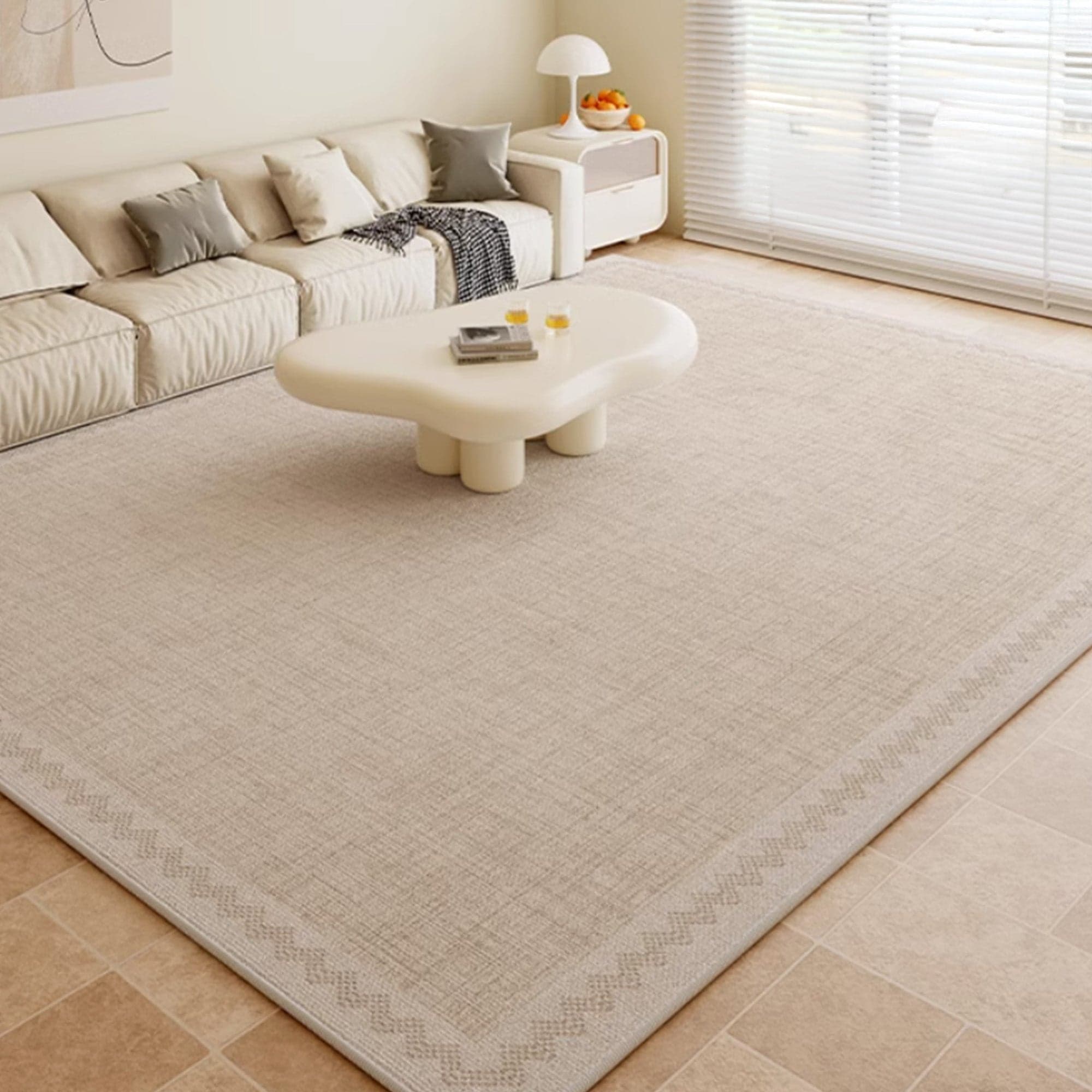 Slashop Easy Clean Rug Beige Chevron Border Spillproof Pet-Friendly Minimalist Living Room Area Rug - Soft Beige