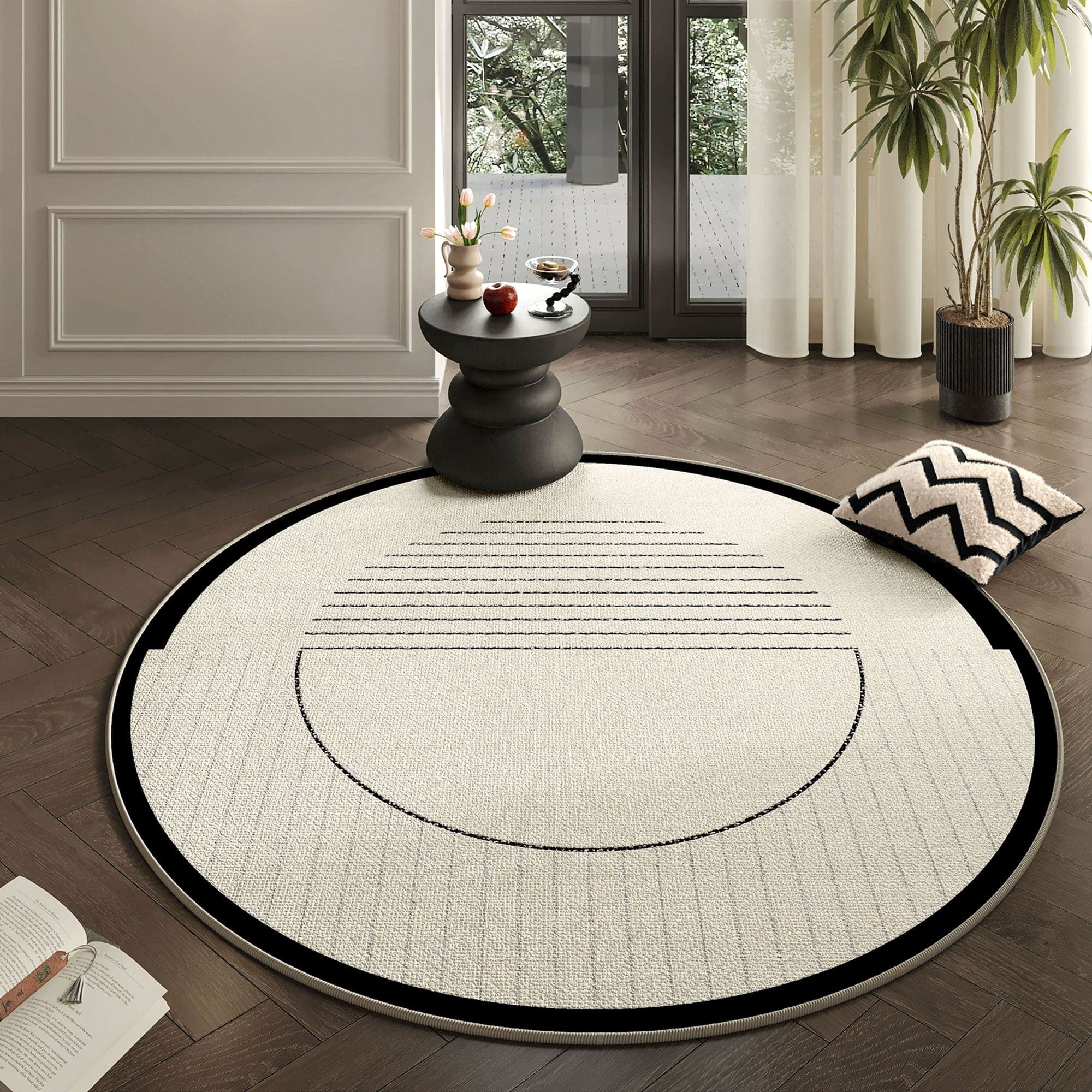 Slashop Easy Clean Rug Modern Zenith Spillproof Pet-Friendly Chic Living Room Plush Round Rug - Monochrome Harmony