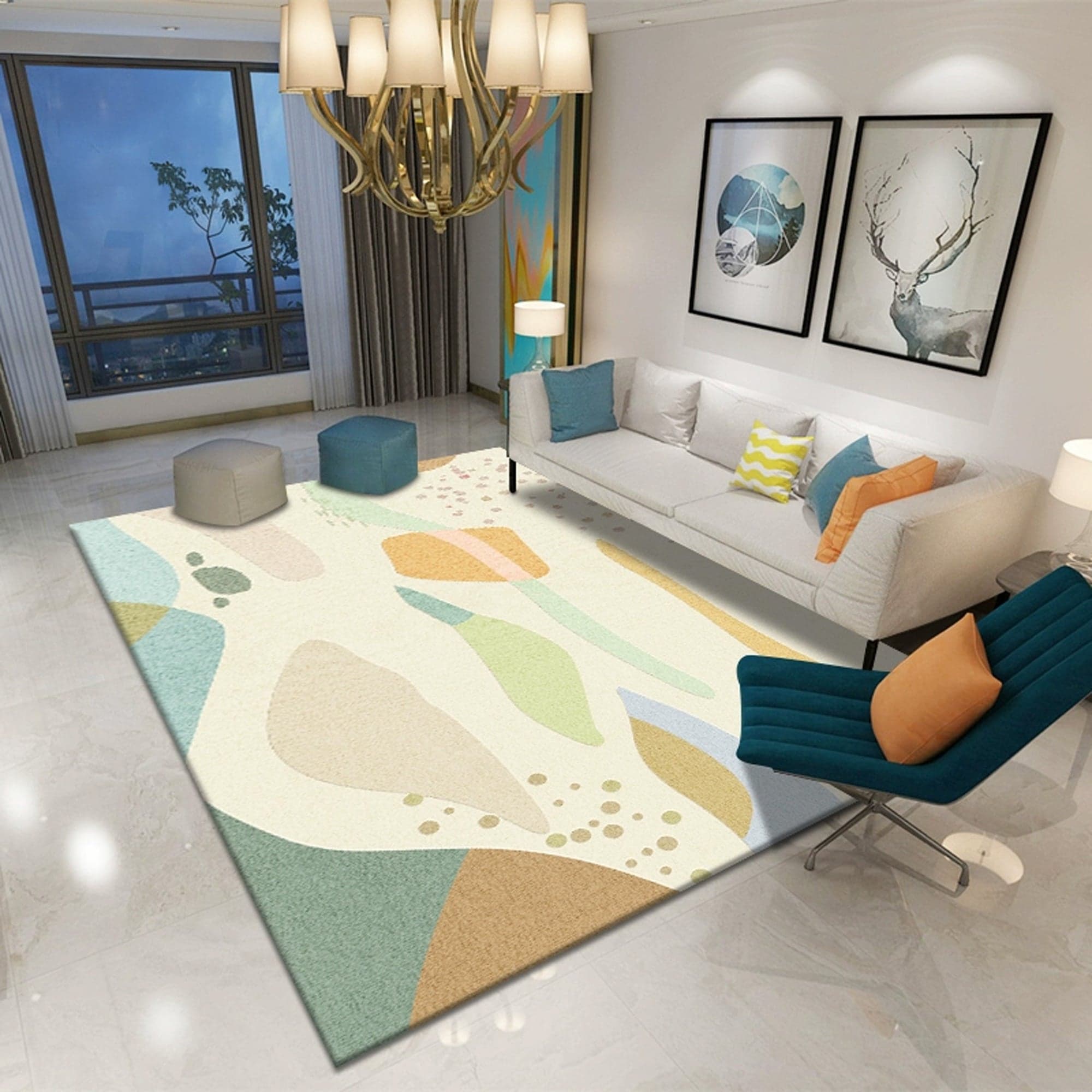Slashop Easy Clean Rug Pastel Abstract Pattern Spillproof Pet-Friendly Modern Living Room Area Rug