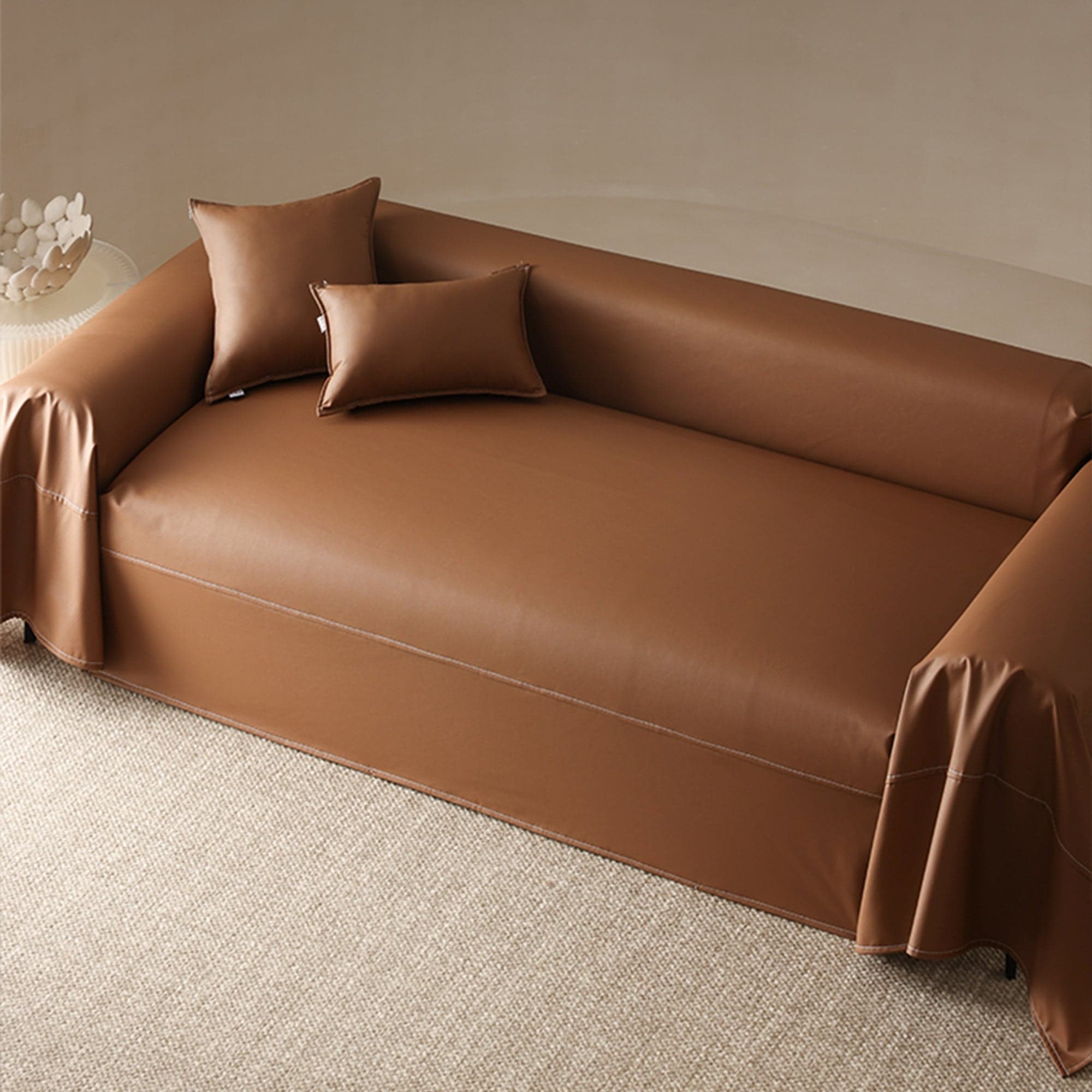Slashop Premium Leather Sofa/Couch Cover - Cocoa Brown