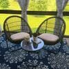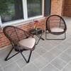 Upgrade your outdoor seating area with the backyard expressions 3-piece tan wicker bistro conversation set. Crafted with style and durability in mind, this set features hand-woven tan wicker and a sturdy steel frame, ensuring it withstands various weather conditions for years to come. Perfect for intimate gatherings or enjoying a quiet moment outdoors, this set includes two chairs and a table, offering both comfort and functionality.