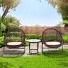 Brown 3-Piece Wicker Outdoor Bistro Set with Tan Cushions
