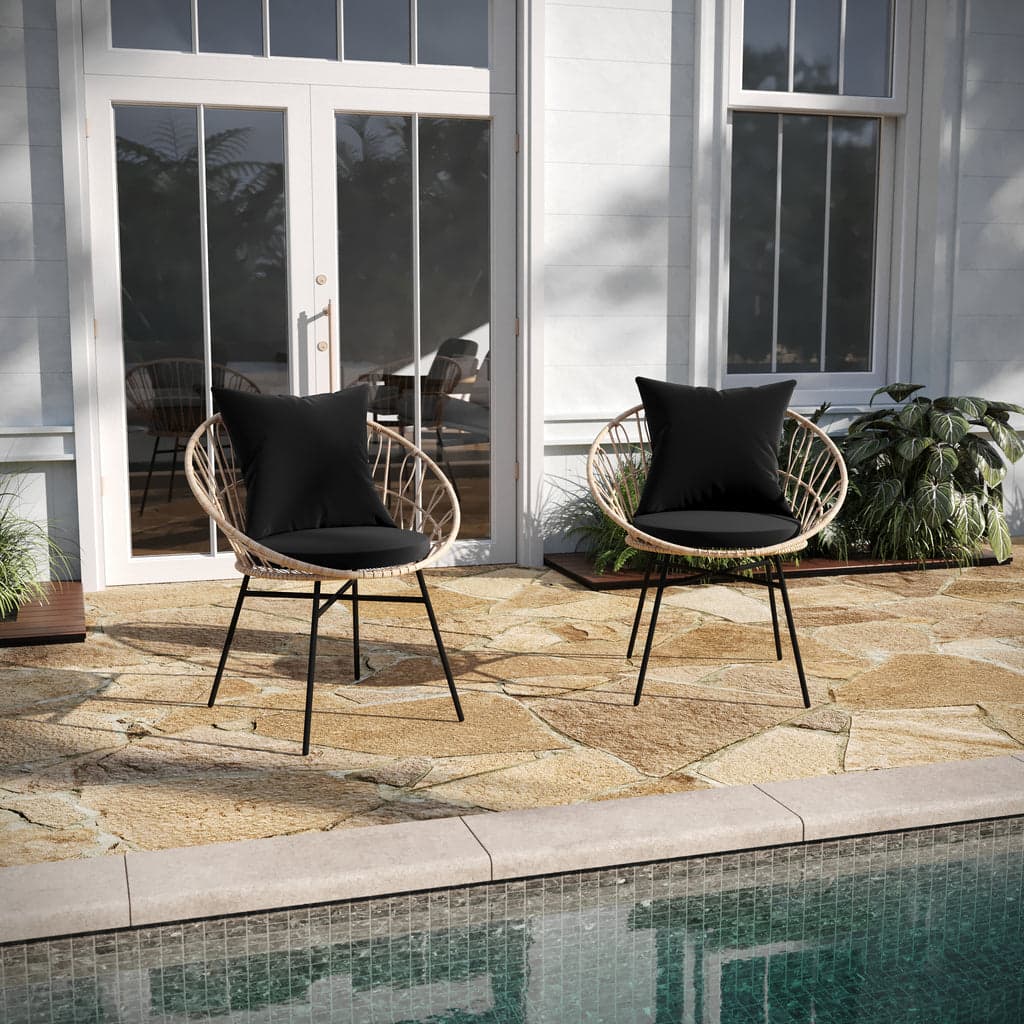 Fielder Set of 2 Indoor/Outdoor Papasan Style Patio Chairs, with Tan Finish PE Wicker Rattan Rope and Cushions