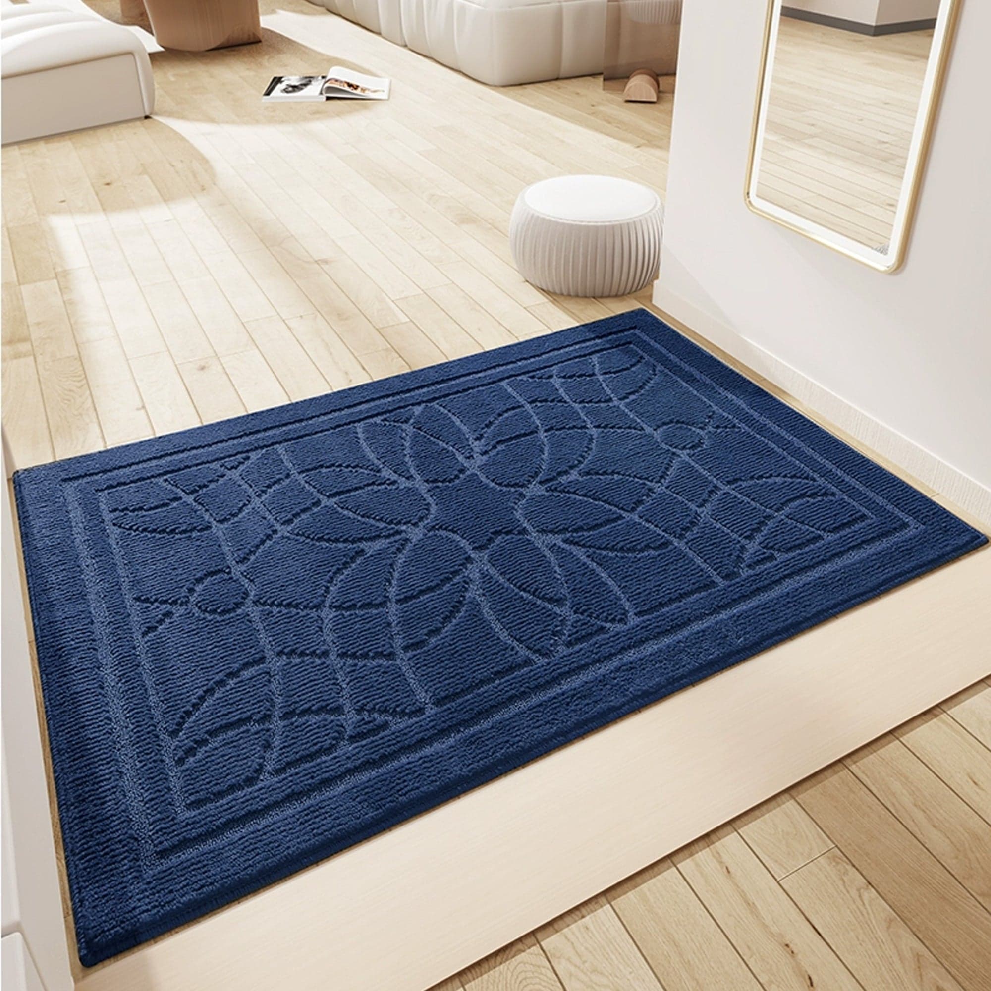 Slashop Easy Clean Rug Modern Embossed Floral Durable Non-Slip Pet-Friendly Indoor Area Outdoor Doormat - Indigo Twilight