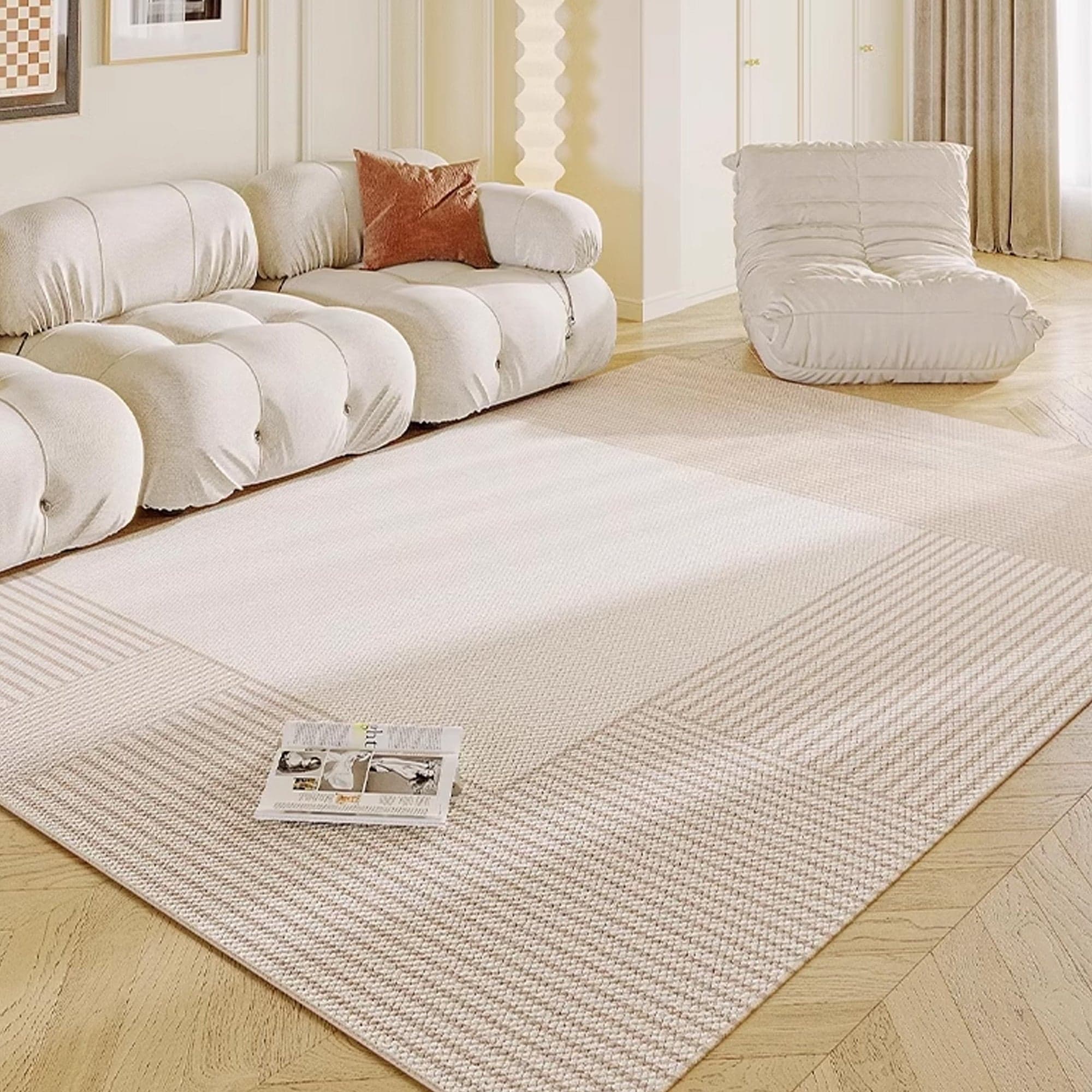 Slashop Easy Clean Rug Modern Minimalist Geometric Spillproof Pet-Friendly Living Room Large Area Rug - Sandstone Stripes