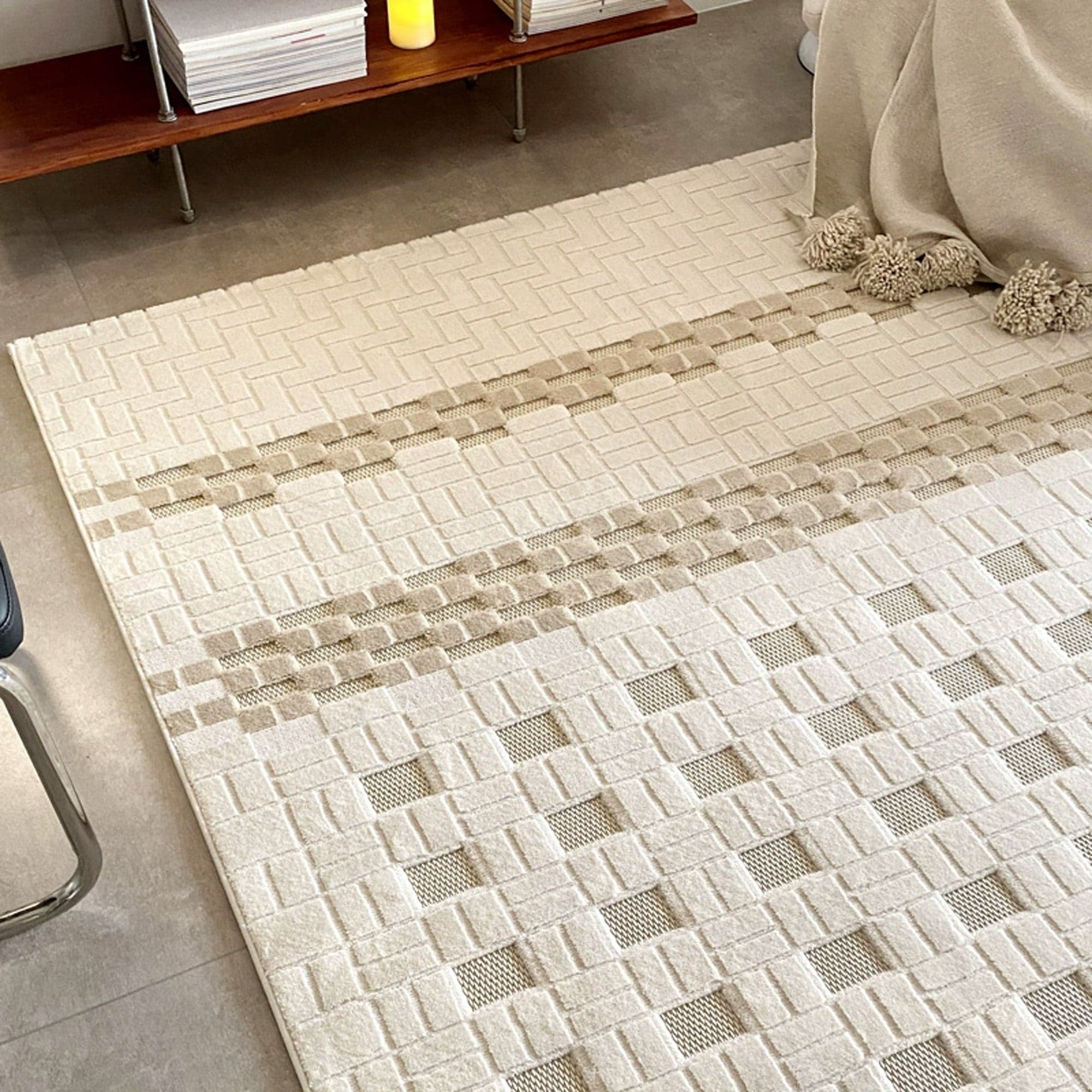 Slashop Easy Clean Rug Textured Geometric Cream Spillproof Pet-Friendly Boho Living Room Large Area Rug