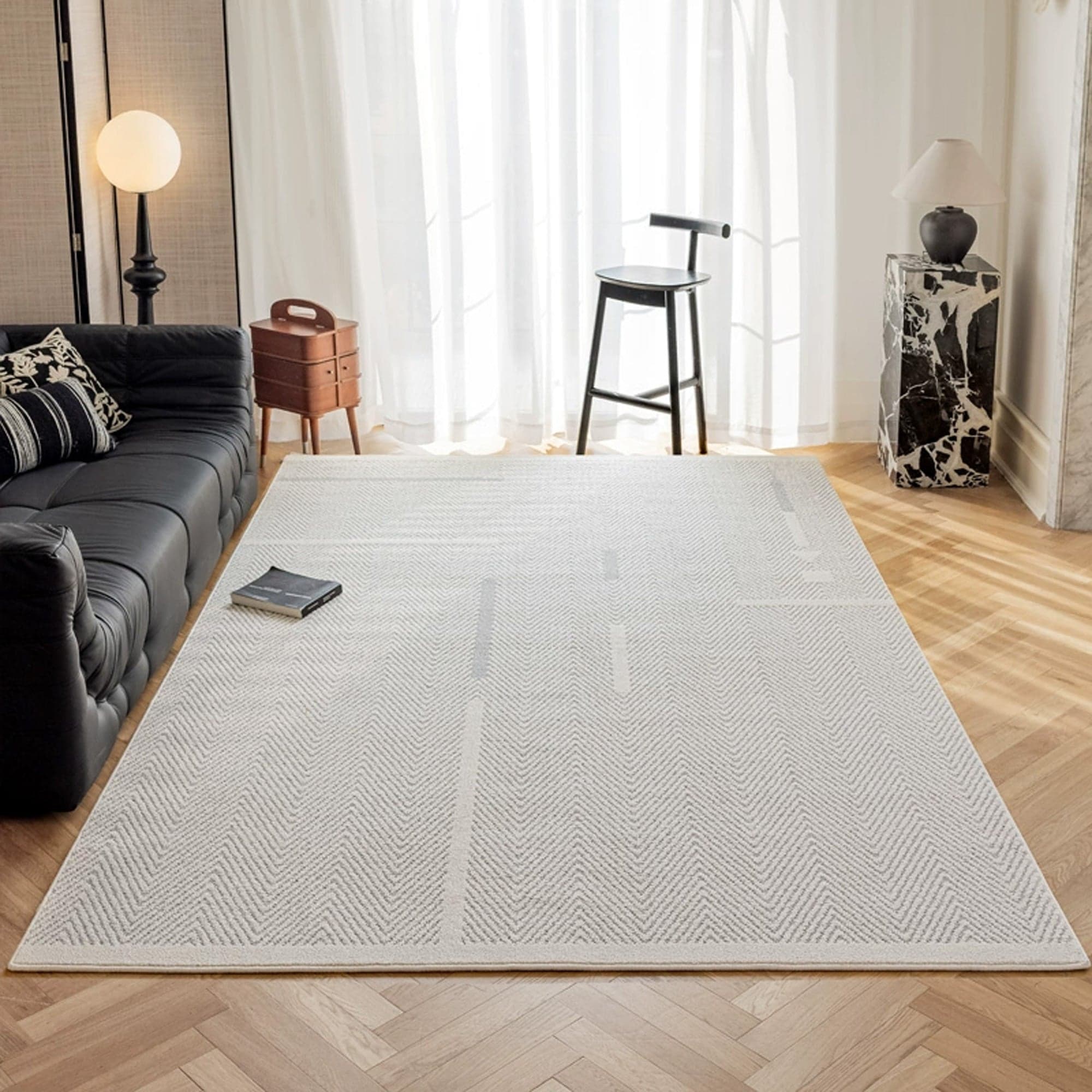 Slashop Easy Clean Rug Contemporary Herringbone Textured Spillproof Pet-Friendly Luxury Bedroom Living Room Large Area Rug - Herringbone Silver