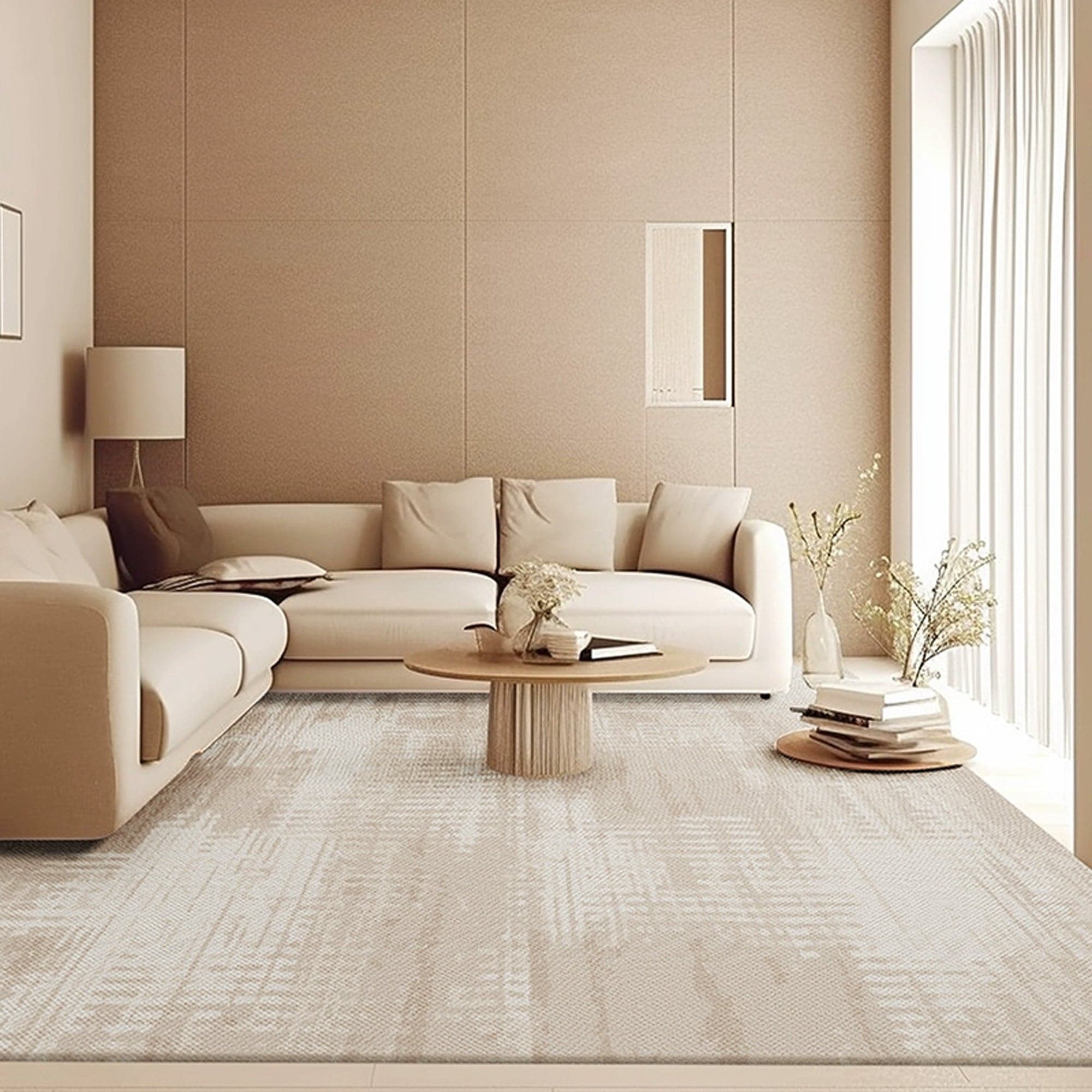 Slashop Easy Clean Rug Abstract Pattern Neutral Spillproof Pet-Friendly Living Room Large Area Rug - Ivory Canvas