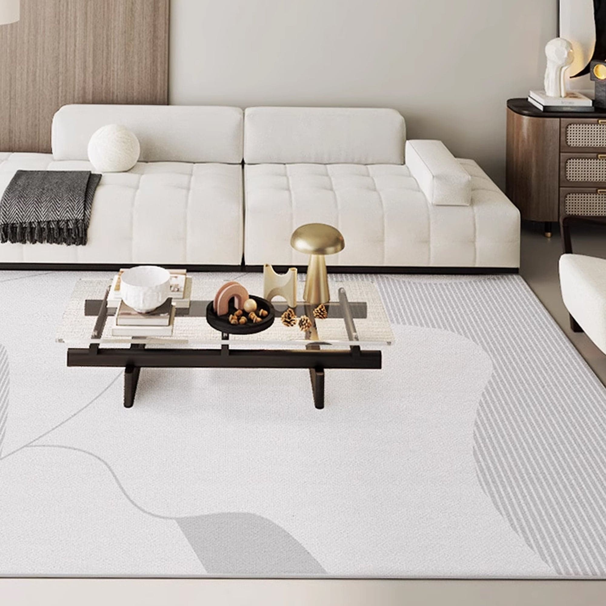 Slashop Easy Clean Rug Minimalist Grey Abstract Spillproof Pet-Friendly Living Room Large Area Rug - Whispering Dunes