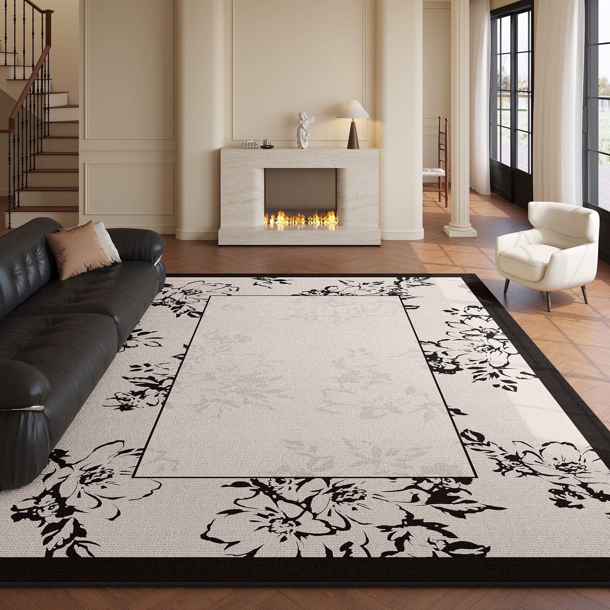 Slashop Easy Clean Rug Classic Black and White Floral Spillproof Pet-Friendly Boho Living Room Large Area Rug - Floral Grace