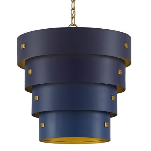 Graduation Pendant - Blue/Gold Leaf - Currey & Company | Hanging Light, Lanterns - Hardwired - Practical, Aesthetic