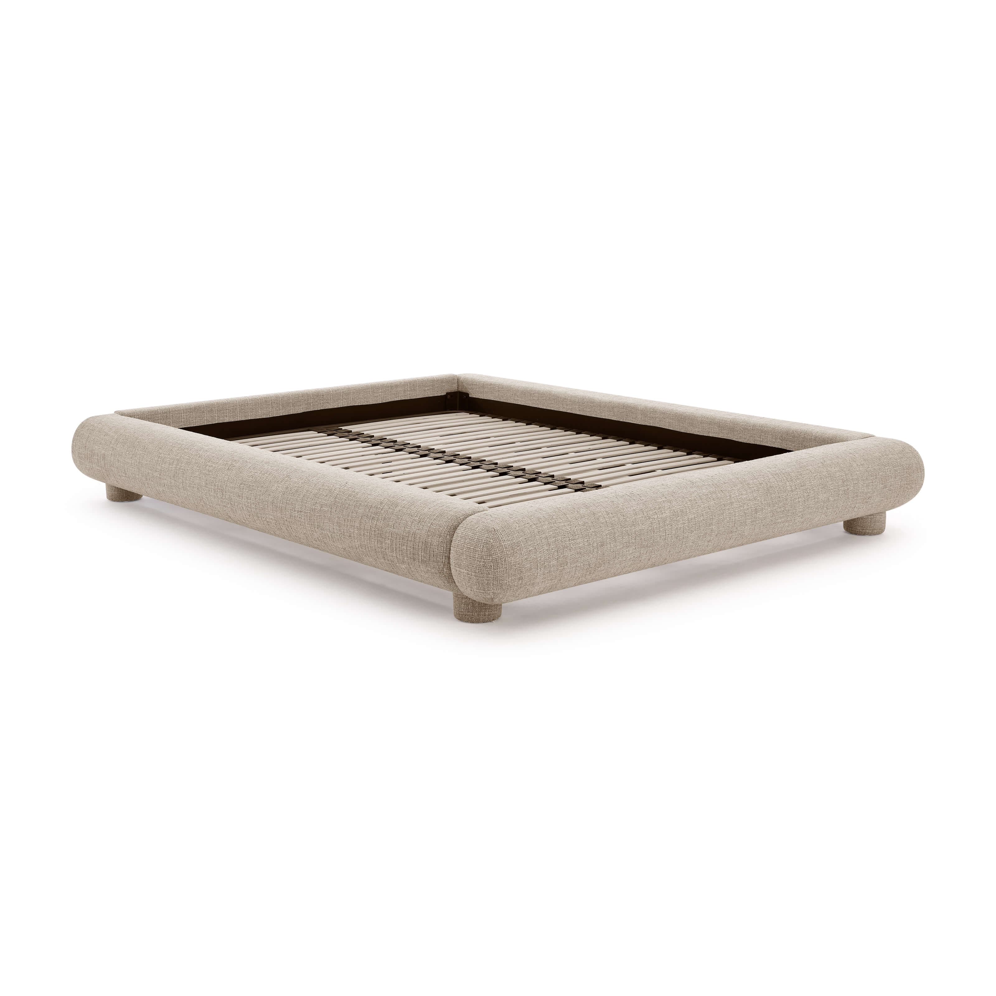 Adonis Modern Low Profile Woven Fabric Upholstered Bed Frame Woven Palo-Clay Beige Multi / King Size