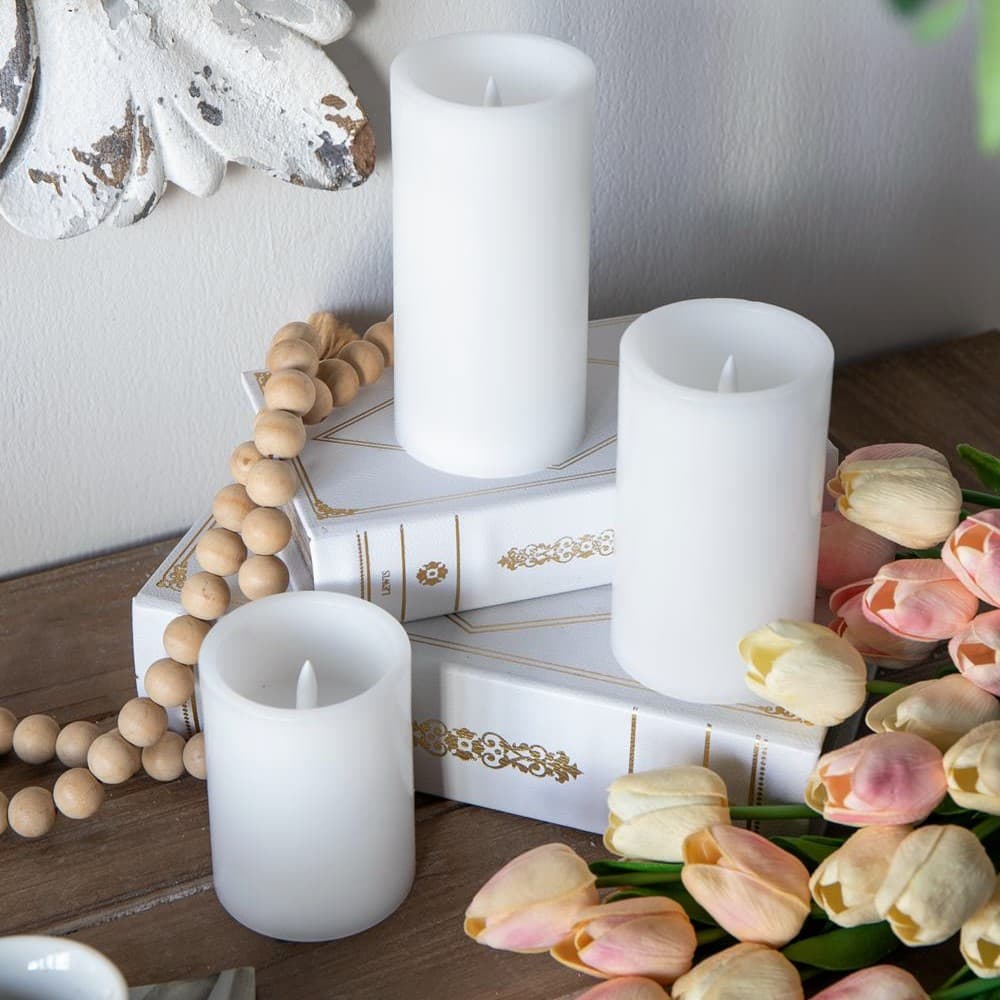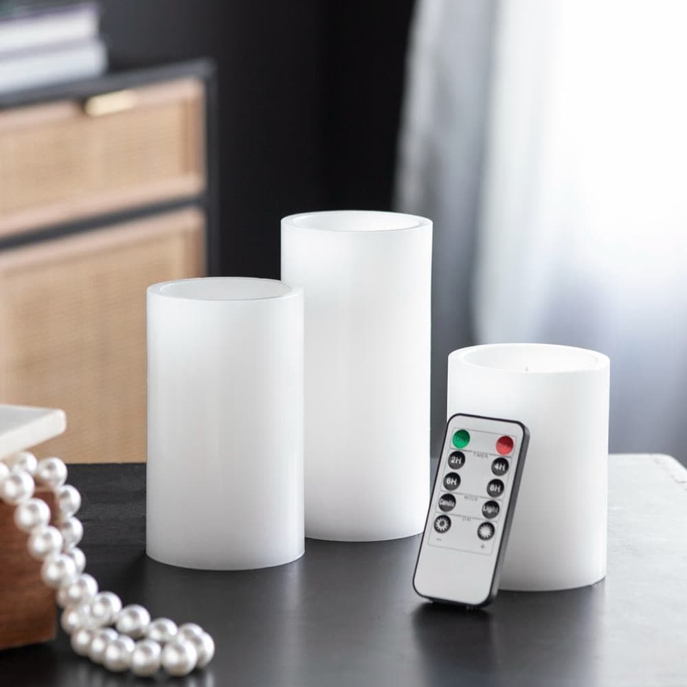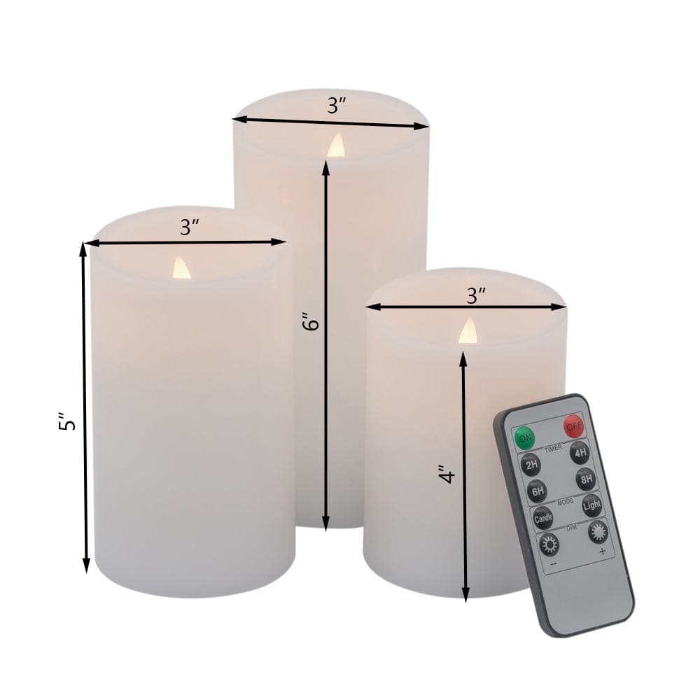 Set of 3 LED Paraffin Wax Candles with Remote Timer, Flameless Flickering Design, Decorative Accessories for Indoor and Outdoor, White | Aosom.com