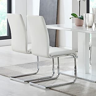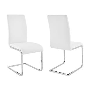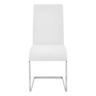 The Armen Living Amanda contemporary side chair is a sleek and stylish addition to the modern household. This beautiful side chair sports a chrome metal frame upholstered with stylish faux leather. The stylized bend of the Amanda's base makes this chair a standout without compromising on the durability of the product. Pair the Amanda side chair with the Amanda dining table and corner sofa for enhanced aesthetic cohesion. This is simple but yet sophisticated design that you can play up or down in any room in your home. The high cushion back is ideal for posture alignment and an unmatched support for days on end. The smooth and soft upholstery will keep you at ease all day with the high back to help keep your back in the upright posture. The foundation of the product is supported by solid chrome steel for a sturdy and modern look without comprising practicality and functionality of this item. This item is a versatile piece that can be ideal for dining, kitchen or even home office desk chairs. This product ships in one box with easy and quick set up. We stand by the quality, the craftsmanship and the integrity of our product by offer 1-year warranty for all our products. The Amanda's plush, yet sleek upholstery is available in three colors: black, white, and grey. The Amanda side chair is sold in a set of 2. Product Dimensions: 17"W x 23"D x 38"H