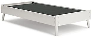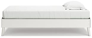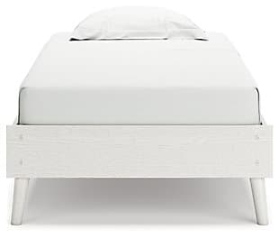 Dare to take minimalism to the max. The Aprilyn twin platform bed has an air of sleek simplicity thanks to its white painted finish with subtle replicated wood grain. Magnificently mod splay legs are a compelling complement to the streamlined design. There's no doubt about it: This contemporary piece is sure to become a classic.