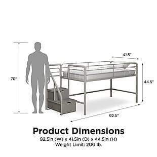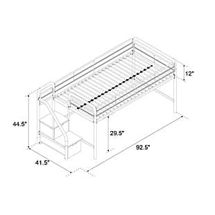 Have you ever wished for a more spacious bedroom and additional storage – but simply didn’t have the room for it? With our Atwater Living Kaden Junior Twin Loft bed with Storage Steps, all your wishes can come true. This versatile bed has steps with storage spaces that are perfect for storing all your children’s toys, that are constantly laying all over the floor. It is affordable and sturdy, but wait there’s more! This space-saving functionality also has additional space underneath the bed, perfect for a play area or desk.