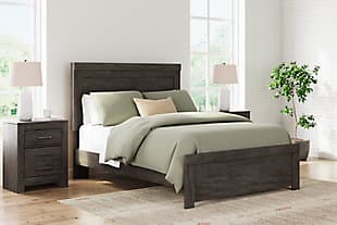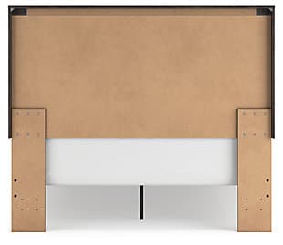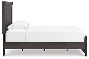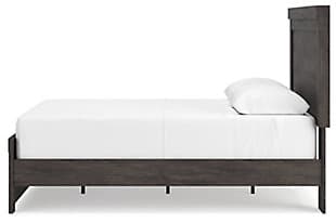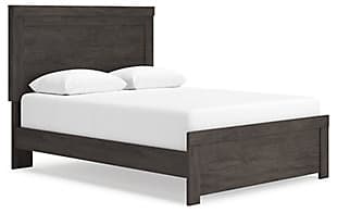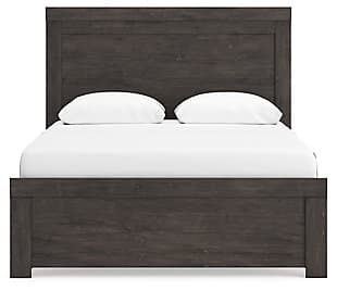 Priced to entice and styled to impress, the Brinxton queen panel bed pairs urban sophistication with a decidedly relaxed air. It’s got the crisp, clean lines of a contemporary piece, complemented with the earthy feel of a dark charcoal finish. Sleek in its simplicity, it suits your desire for fresh bedroom style with essential function.