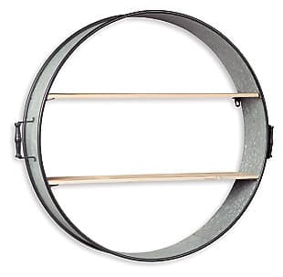 Create extra show-off space by hanging up the Eirny wall shelf. Its generously scaled barrel design with wooden shelves puts your decor on display with style. Galvanized metal adds an industrial feel to the look.