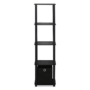 Expand your possibilities with this versatile bookcase. Offering ample area for storage and display, four shelves with a fabric bin and an open design make for an elegant and generous place for books, photos, trophies and other mementos. This simple piece blends seamlessly into your room, your style and your budget.