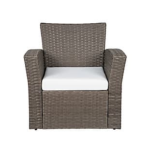 Be it on the patio, porch, balcony, pool area—or even in an indoor space—this 4-Piece Patio Conversation Sofa Set looks right at home wherever it lands. Made from a wicker-inspired rattan and constructed with a sturdy steel frame, it brings big style to small spaces. The polyester cushions are weather resistant for lasting durability.