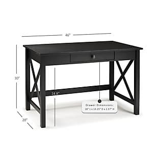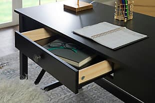 The Blaine Collection has a simple yet eye-catching design that is matched with incredible durability. This versatile laptop desk makes good use of space with ample work and display space. A single, wide drawer provides ample hidden storage space for small items or even a keyboard. A neutral, black finish allows this piece to easily complement your homes decor.