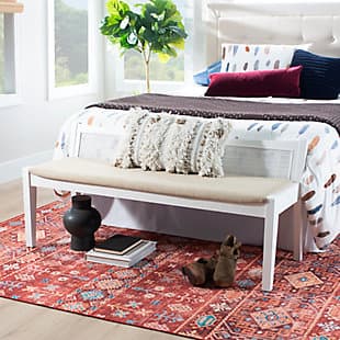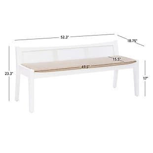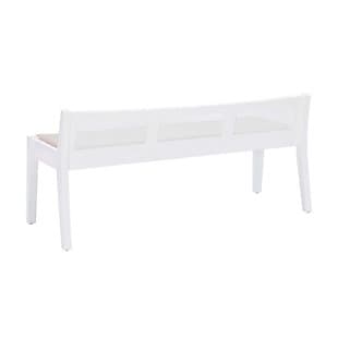 Impressive design allows this bench with a low profile back to fit in numerous places in your home. The woven rattan cane back combines with the linen padded seat made to create an inviting resting spot in your entryway, bathroom or at the foot of a bed. The frame in a lustrous white paint finish provides an elegant, yet sturdy foundation that you'll enjoy for years to come.
