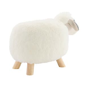 The whimsical Sheep Stool is a great addition to any child's room. The durable, furry fabric feels like a cuddly sheep. Complete with floppy ears that finish the look of a friendly baby lamb. Perfect for inspiring the imagination of kids of all ages. Sturdy wooden feet complete the look.