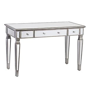 Be fabulous in life and work. Design the perfect lifestyle with this statement-making mirrored desk. Quickly clear your workstation with a pull-out drawer and reveal convenient storage for your keyboard and mouse. Anchoring drawers keep office supplies and mail in their place, and silvertone borders and tapered legs add interesting angles to your home office story. From your dressing area to the home office, this desk works as hard as you do.