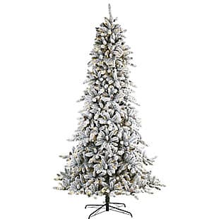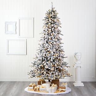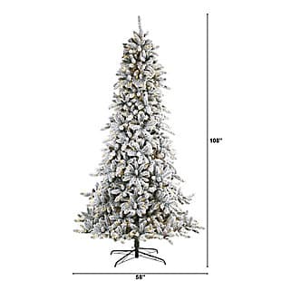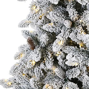 Create a picture-perfect white Christmas in your home with this artificial tree. Its robust tiers of realistic-looking foliage are dusted with faux snow and accented with faux pine cones. Pre-strung with clear warm LED lights, this maintenance-free tree will fill your home with holiday joy for years to come.