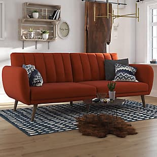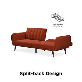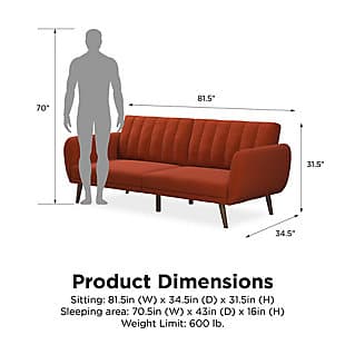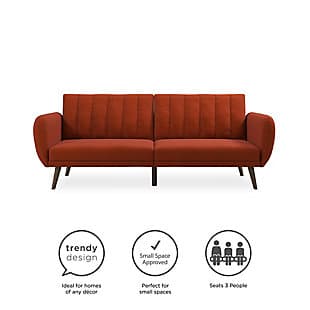 Be embraced by the comfortable cushioning of the Novogratz Brittany linen futon. With its ribbed tufted cushioned back, the Novogratz Brittany Linen futon gives your body all the support you need to sit and relax for hours. The combination of curved armrests and slanted legs work together to provide a unique rounded look that stands out. The linen upholstery adds another element of elegance making this a perfect statement piece for any living space.