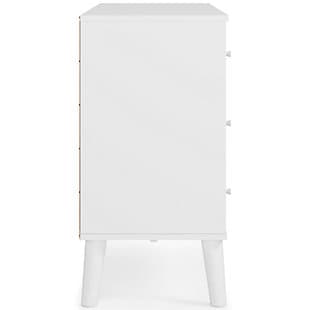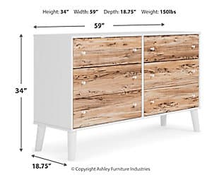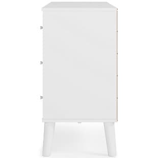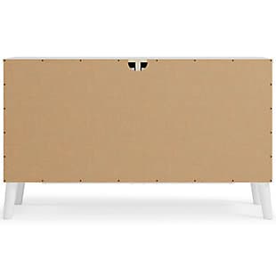 The perfect marriage of contemporary and casual style, the Piperton dresser is a charming addition to your home. It's expressive with a two-tone look in a solid matte white finish and a replicated sugarberry wood grain pattern. Ball-bearing glides offer smooth opening and closing of the drawers, while white knobs and splay legs add a finishing touch.