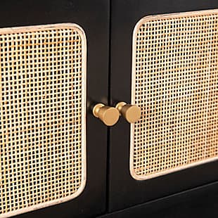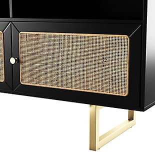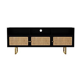 Give your living space a modern refresh with this media storage console. Three spacious cabinets tuck away movies and toys, while rattan accents add unique texture to your space. A cord control opening and three media shelves keep electronics tidy and organized, letting you relax with your favorite movie or show. Bring back movie night when you place this TV cabinet in front of your living room sofa or in your open concept living space.