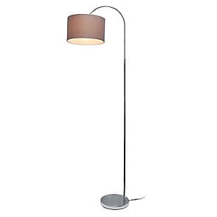 Upgrade your basic floor lamp with this simple but fun arched floor lamp. This item has a fresh look with a brushed nickel finish throughout and a clean gray fabric shade. It's the perfect addition to modern or traditional styled rooms.