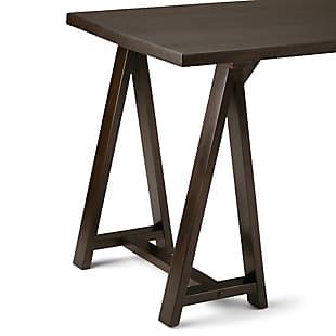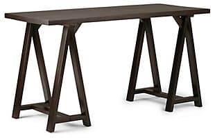 Make it work in a simply striking way with this 56" sawhorse industrial desk. Handcrafted of solid pine wood that’s beautified with a dark chesnut brown finish, this desk masters the art of simplicity with its clean, uncluttered flair, extra thick tabletop and sturdy sawhorse supports. What an inspired choice for modern farmhouses and industrial-hip spaces.