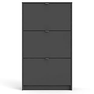 Organize all your footwear in one place and create a clutter-free space with the Bright 3 Drawer Shoe Cabinet. With room for two rows of shoes in each compartment, the Bright 3 Drawer Shoe Cabinet will protect about 18 pairs of your footwear, keeping them looking new! The tilting drawers ensures quick and easy access to your shoes when rushing out the door. This Scandinavian design has a foil surface that is easy to clean and less susceptible to scoring, while providing a durable and functional storage piece that looks anything but utilitarian. Combine with other pieces from the Bright collection to build a shoe cabinet unit.