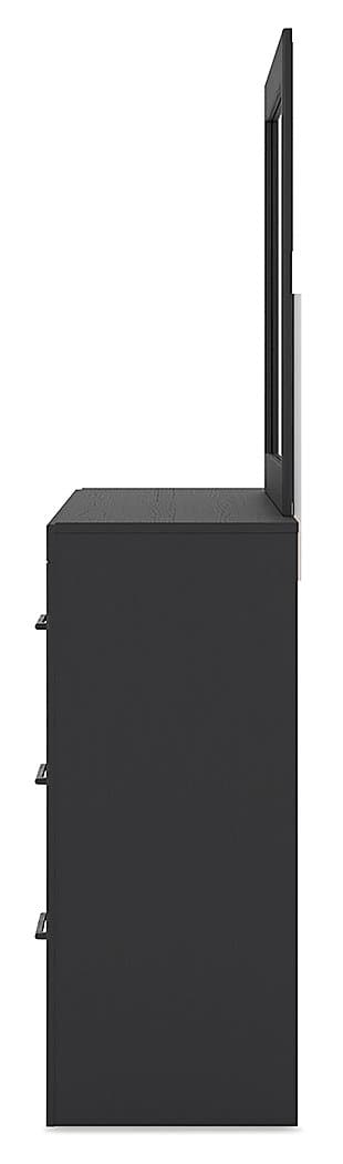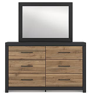 Relaxed yet striking, the Vertani dresser and mirror set brings casual beauty and function to your dream destination. The dresser's delightful two-tone treatment blends a fresh replicated walnut grain with a matte black finish. You'll look fabulous in the unadorned simplicity of the mirror, which lends a contemporary touch while you dress for work or play.