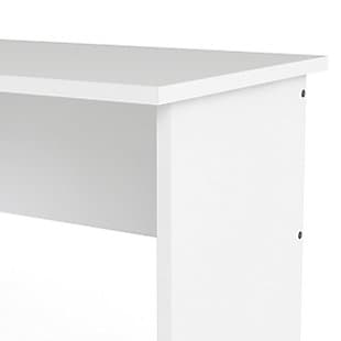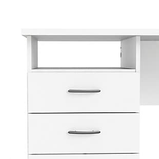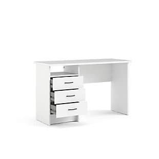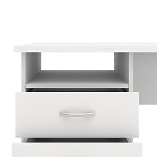 Add function and style to your new office space with this desk. It has one open shelf for easily accessible items and three drawers that provide plenty of storage to assist with office clutter. The drawers are backed with metal glides complemented with plastic bar handles. With a foil finish, the top coat of this desk provides durability and protects against stains, smears and fading.
