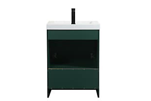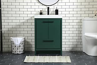 Modern sophistication is defined with this bathroom vanity. Its length makes it the perfect addition to any size home, with plenty of storage space hidden behind the double cabinet doors and single bottom drawer. Topped with a highly durable white resin countertop and an integrated sink, this vanity will add everlasting class to your bathroom or powder room.