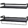 Cubilan 16.75 in. W x 5.5 in. D Black Wood Decorative Wall Shelf, Wall Shelves with Towel Bar, Set of 2 MZ4F01
