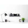 Imagine effortlessly transforming your space with these elegant Floating Wall Shelves. Crafted from sturdy medium-density fiberboard with a frosted surface, these shelves elevate your decor to match your unique style. Designed for modern sophistication, traditional warmth, rustic charm or industrial boldness, these black shelves blend seamlessly with your decorative flair. The versatile design lets you create cozy corners for pets, organize bathroom essentials, display memories, add flair to kitchens or showcase plants. There is also easy assembly without a drill, allowing you to turn your walls into functional art hassle-free.