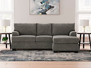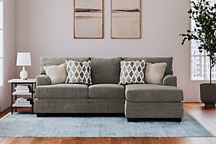 The Dorsten sofa chaise has the corner on ultra-contemporary style made for easy, everyday living. Upholstered in a plush slate chenille, it takes neutral sophistication to another level. And talk about accommodating. Thanks to a versatile chaise with movable ottoman and reversible seat cushions, you can enjoy the chaise on either side to suit your space.