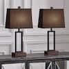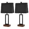 Cinkeda 23.5 in. Black Touch Control Metal Table Lamp Set with USB Ports and AC Outlets (Set of 2) TD-157