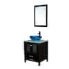 Wonline 24 in. W x 21.7 in. D x 29.5 in. H Single Sink Bath Vanity in Black with Glass Top and Mirror USBR4181+USBR1003